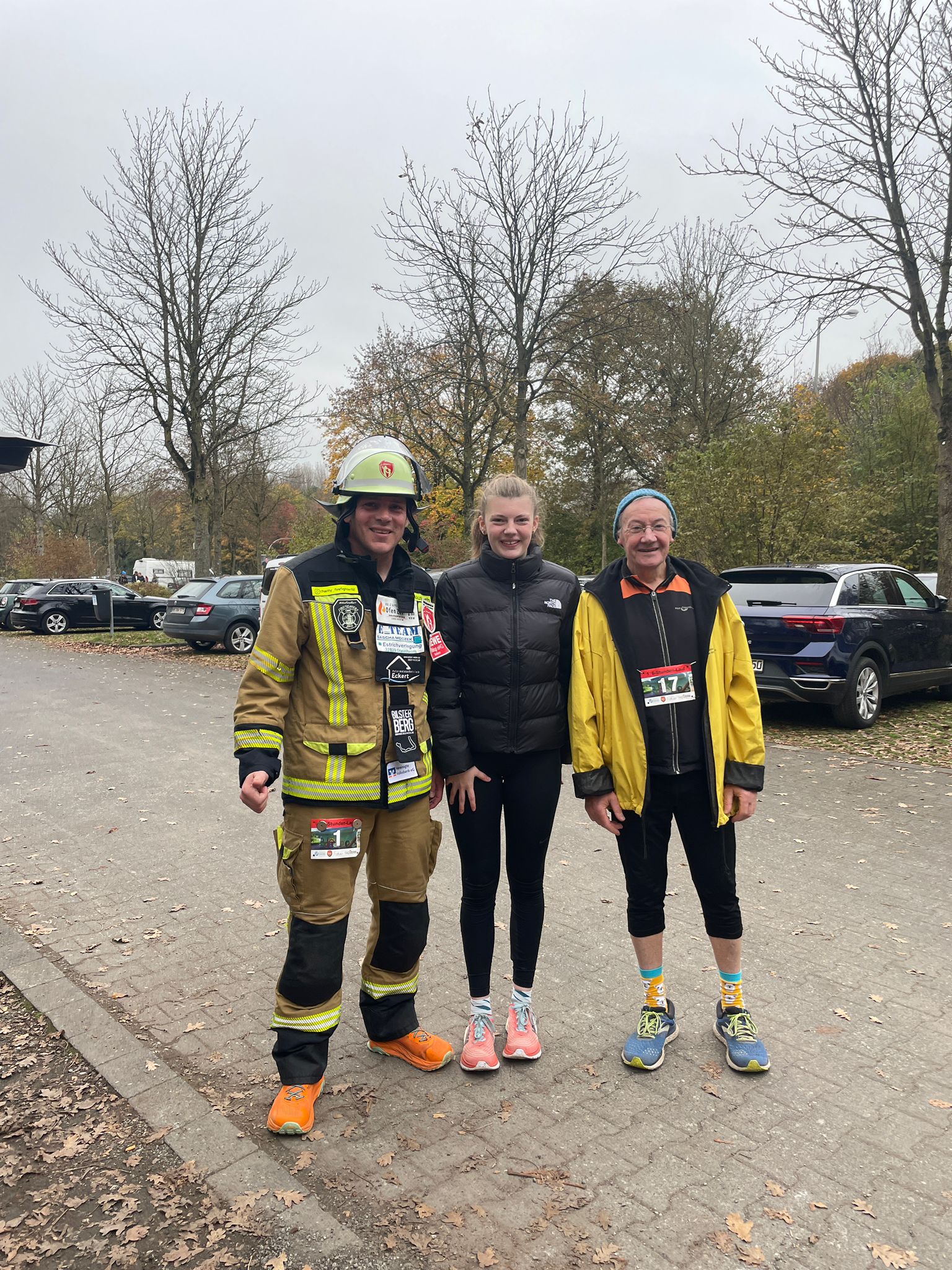 Überraschenderweise schaffte Lara die gleiche Rundenzahl. Das hätte sie sich voher nicht vorstellen können. Ausgepumpt aber Glücklich stellte sie sich mit dem Ältesten und dem Feuerwehrmann zum Siegerfoto.