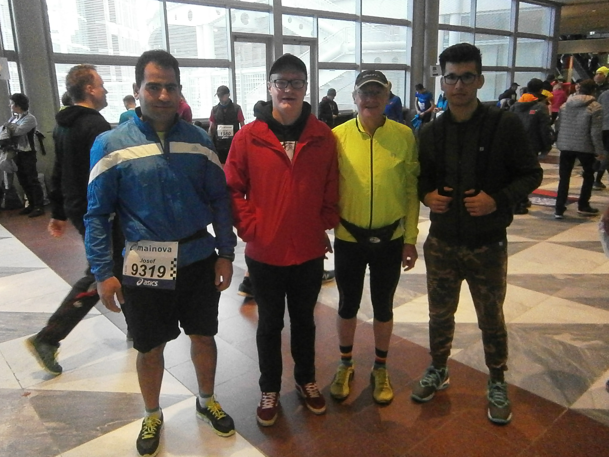 Ein „Alter Hase“ und ein „Anfänger“ beim Frankfurt-Marathon. Mohammad, Lukas, Adalbert und Jalal vor dem StartDas große Duell zwischen Adalbert und Josef beim Marathon in Frankfurt konnte nicht stattfinden. Josef mußte…